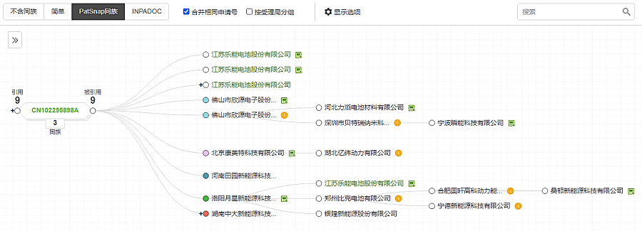 乐虎lehu「全球专利数据库」-专利引用分析图以图谱形式直观展示引用全貌,应用情况全知晓。将引用情况以专利权人名称形式展示,无限层级展开,同时标注专利自引,直观查看哪些专利权人在该专利的基础上做了进一步开展和研究(这些专利权人可能是后续进行专利交易运营的潜在买家或合作伙伴)。